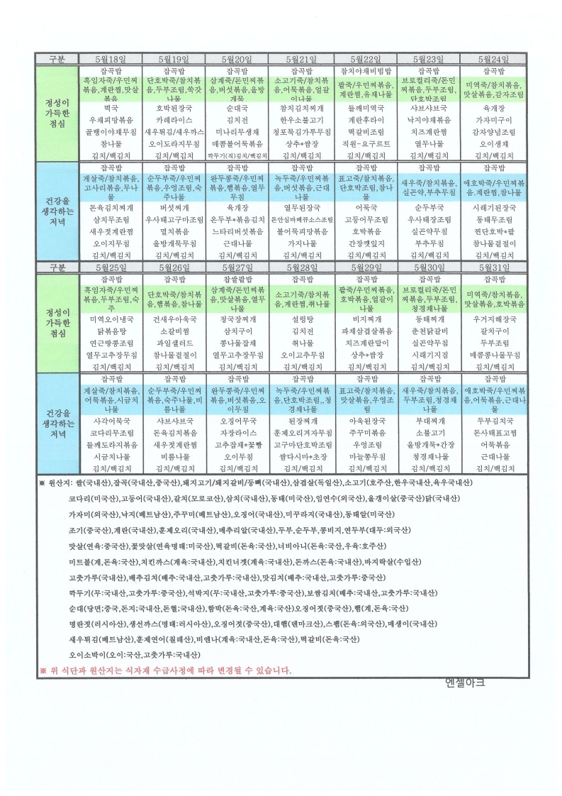 월간식단표(2020.05)