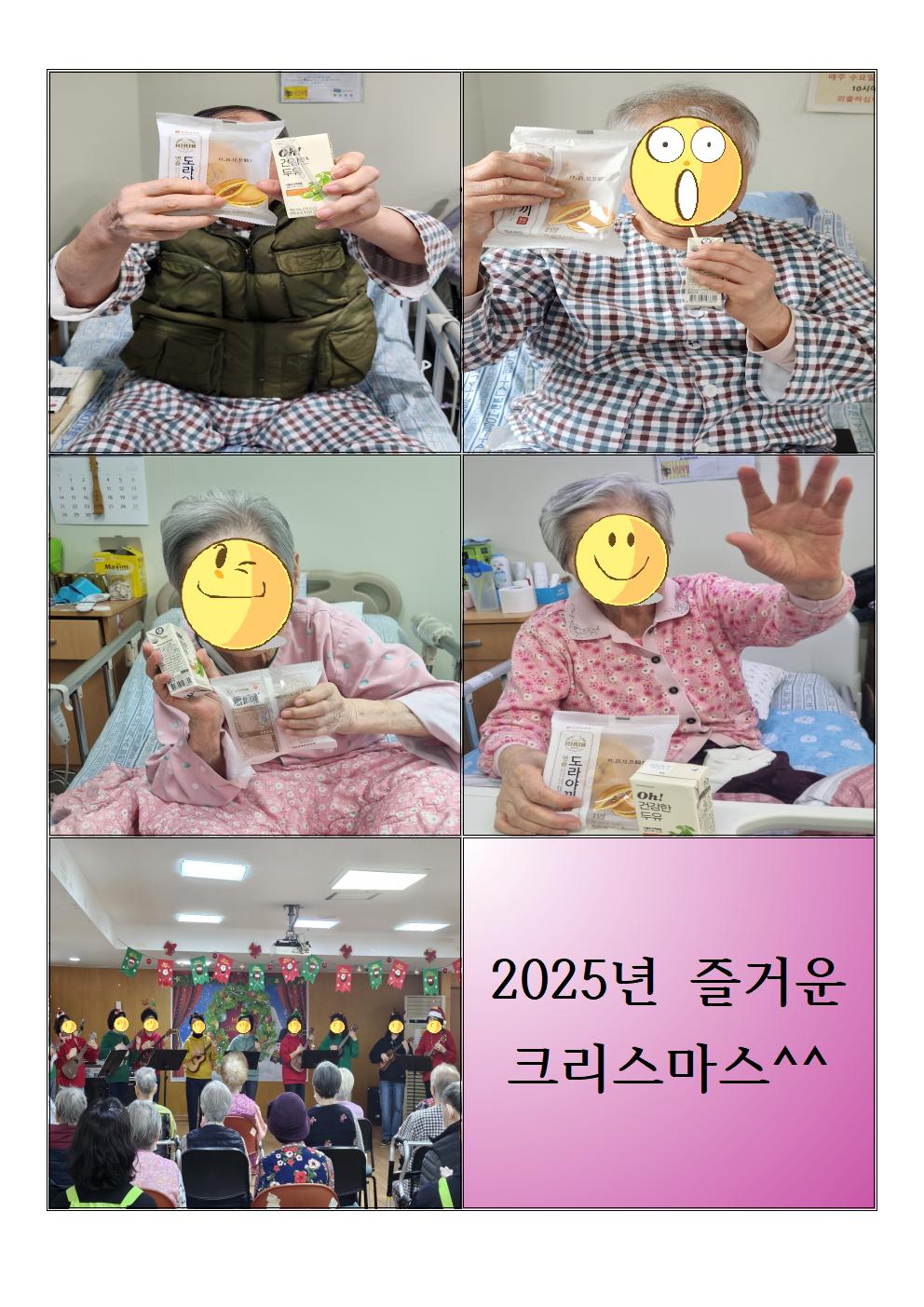 천사노인요양원에 입소해 계시는 많은 어르신들과 다양한 공연을 관람하고, 어르신 개인 선물(간식) 나눔 등 즐거운 크리스마스 이브를 보냈습니다.^^