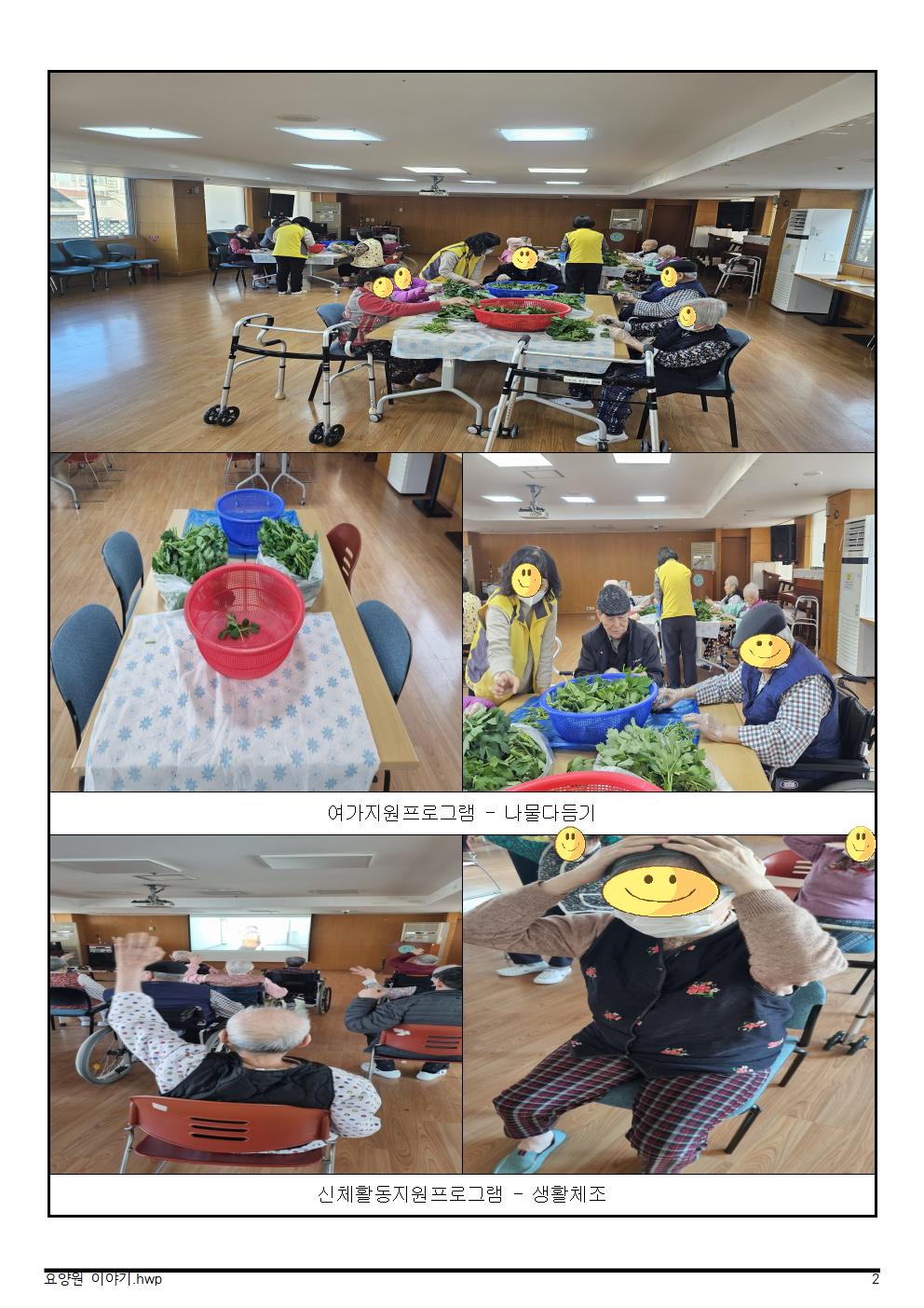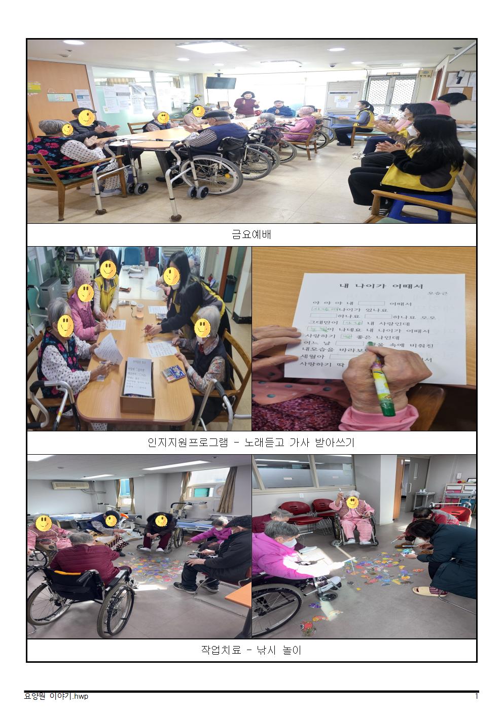 내용 : 신체활동, 인지활동, 여가활동, 작업치료 등 진행하였습니다.