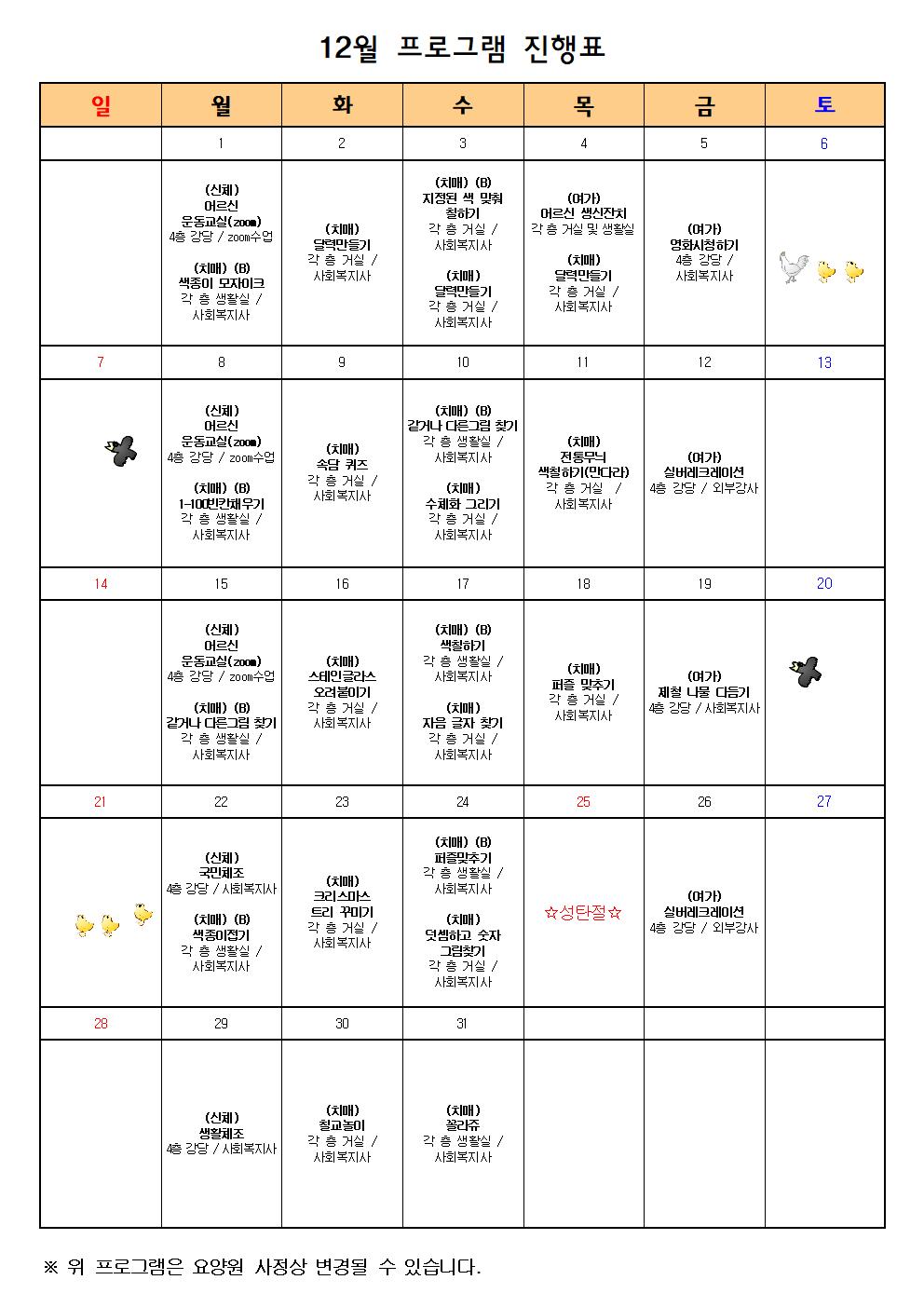 2025년 12월 프로그램 계획표