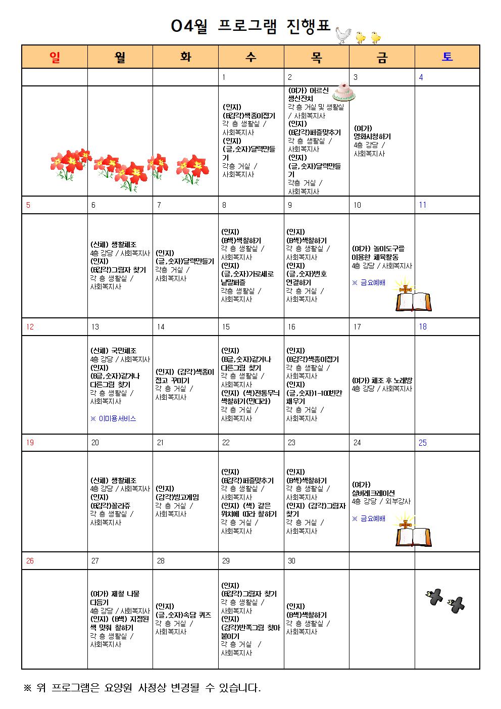 2026년 04월 프로그램 계획표