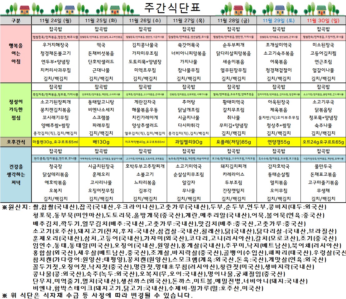 주간식단표(2025.11.24 ~ 2025.11.30)