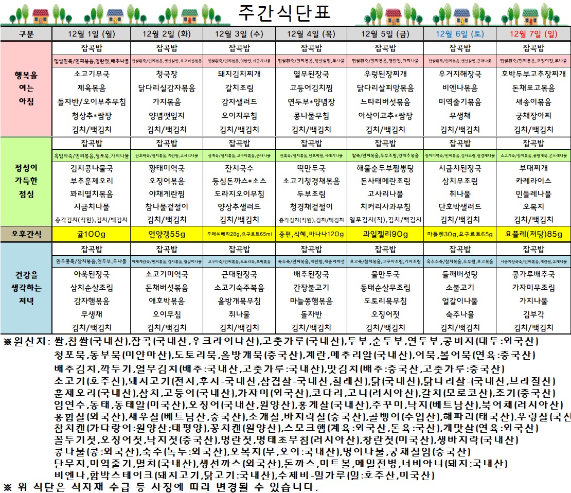 주간식단표(2025.12.01 ~ 2025.12.07)