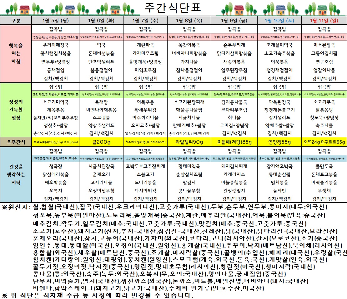 주간식단표(2026.01.05 ~ 2026.01.11)