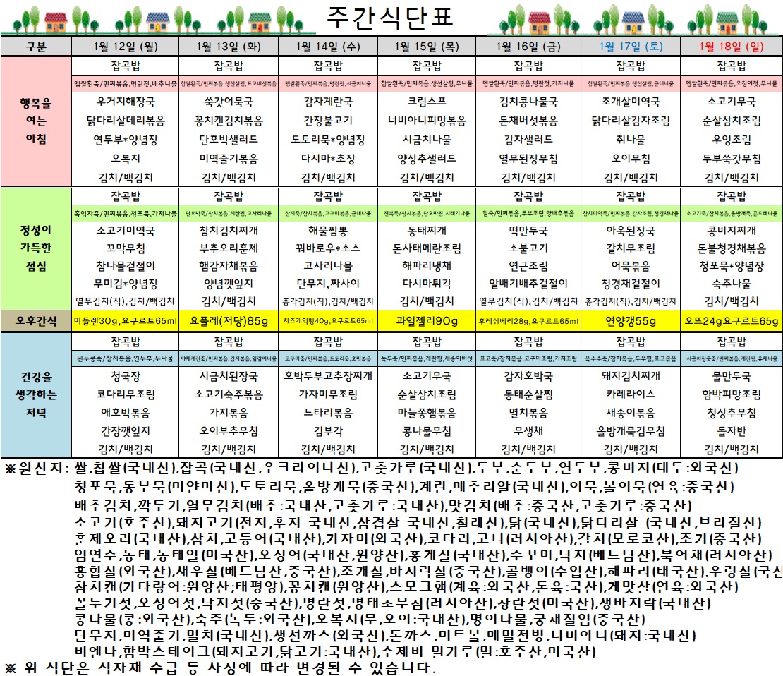 주간식단표(2026.01.12 ~ 2026.01.18)