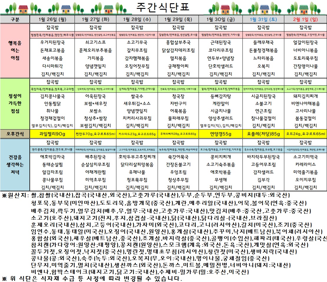 주간식단표(2026.01.26 ~ 2026.02.01)