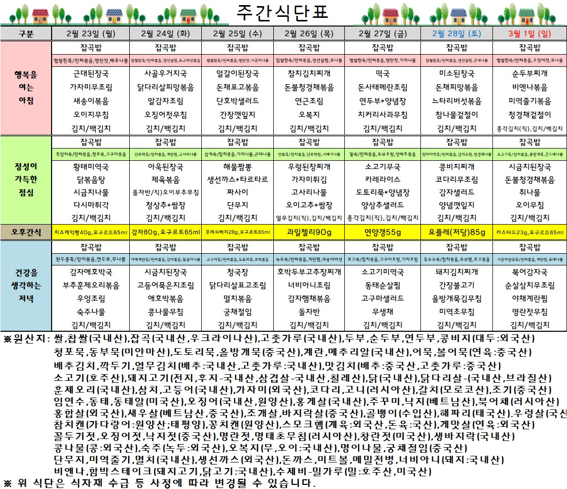 주간식단표(2026.02.23 ~ 2026.03.01)