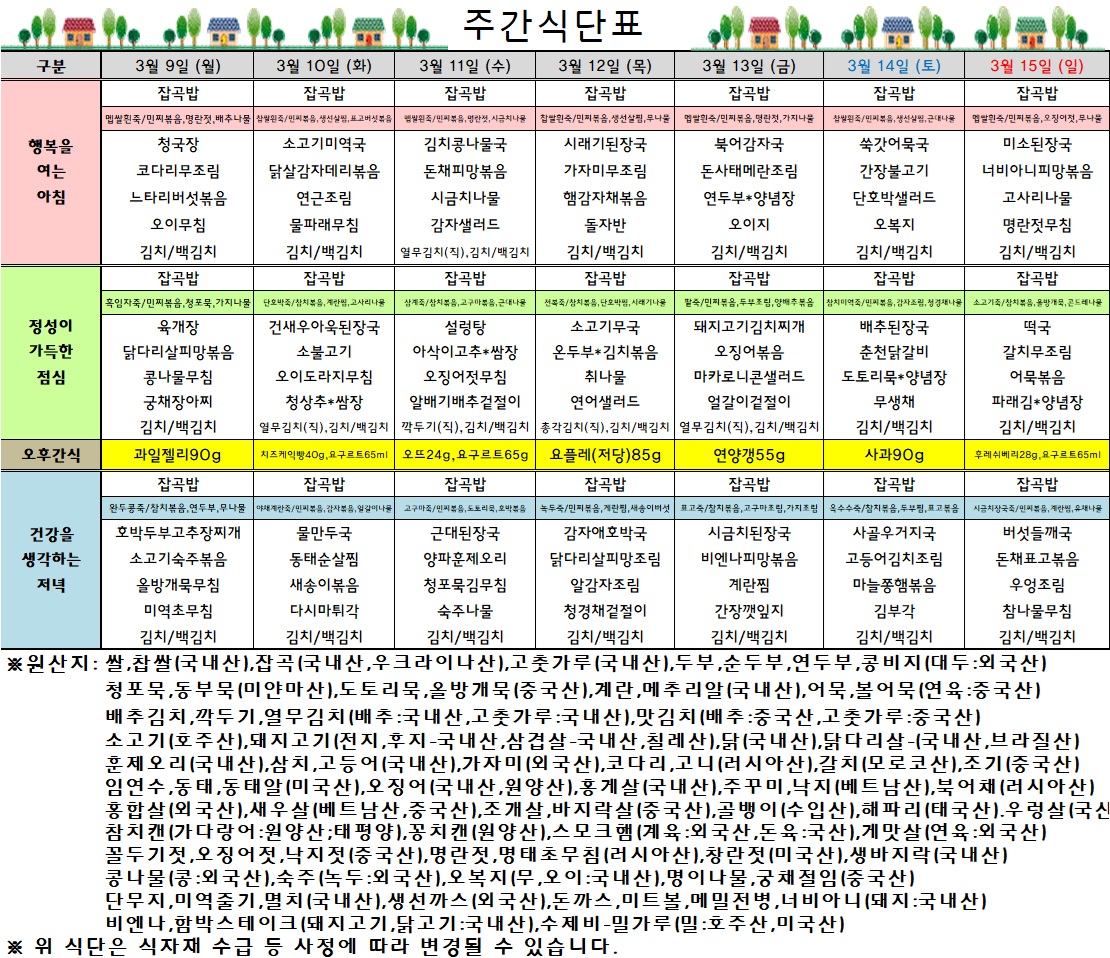 주간식단표(2026.03.09 ~ 2026.03.15)