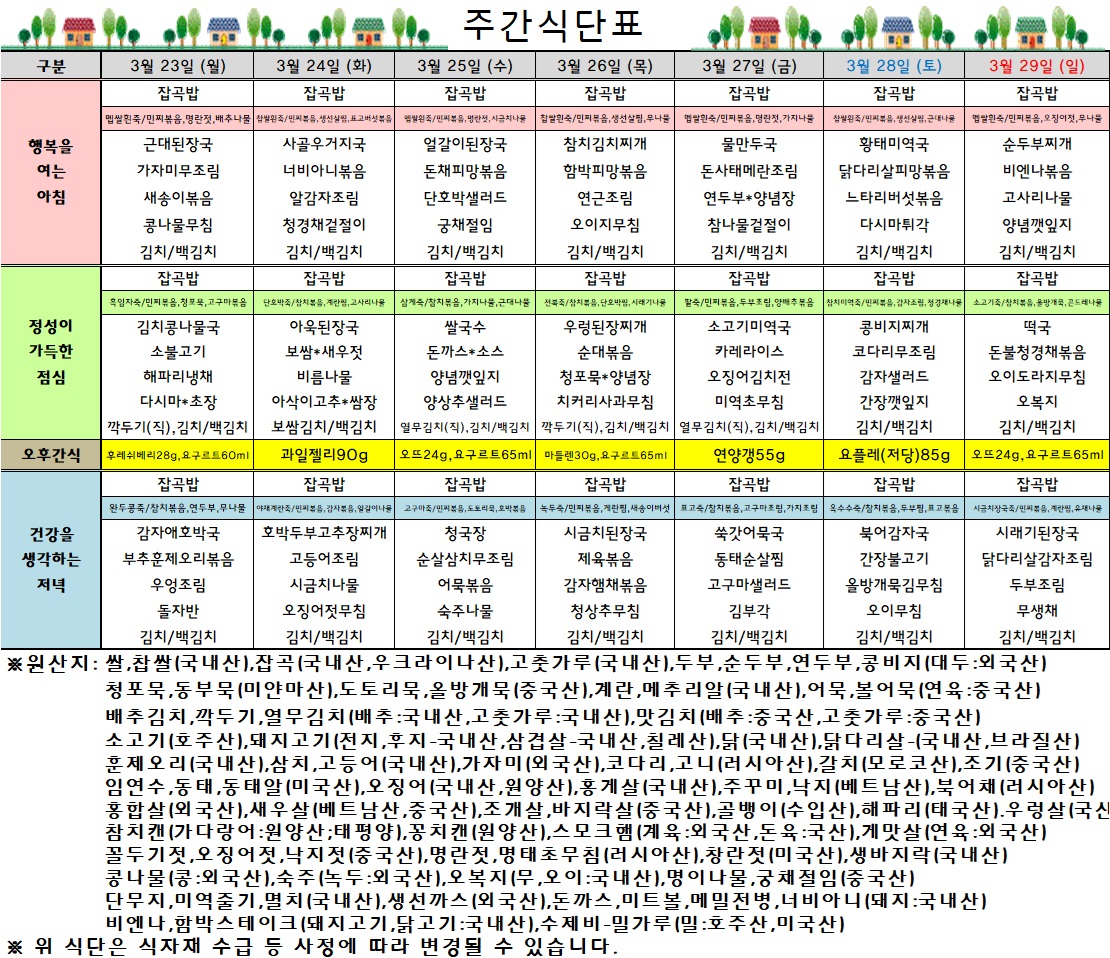 주간식단표(2026.03.23 ~ 2026.03.29)