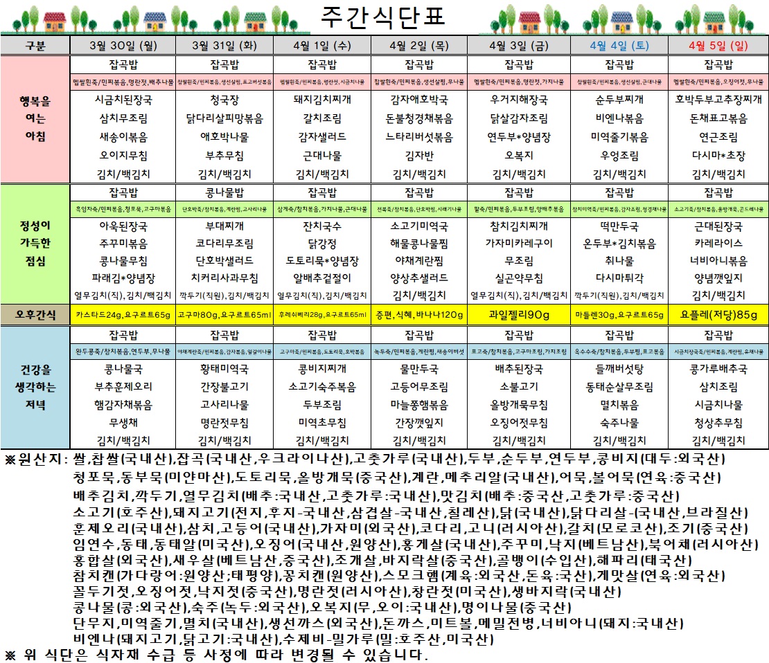 주간식단표(2026.03.30 ~ 2026.04.05)