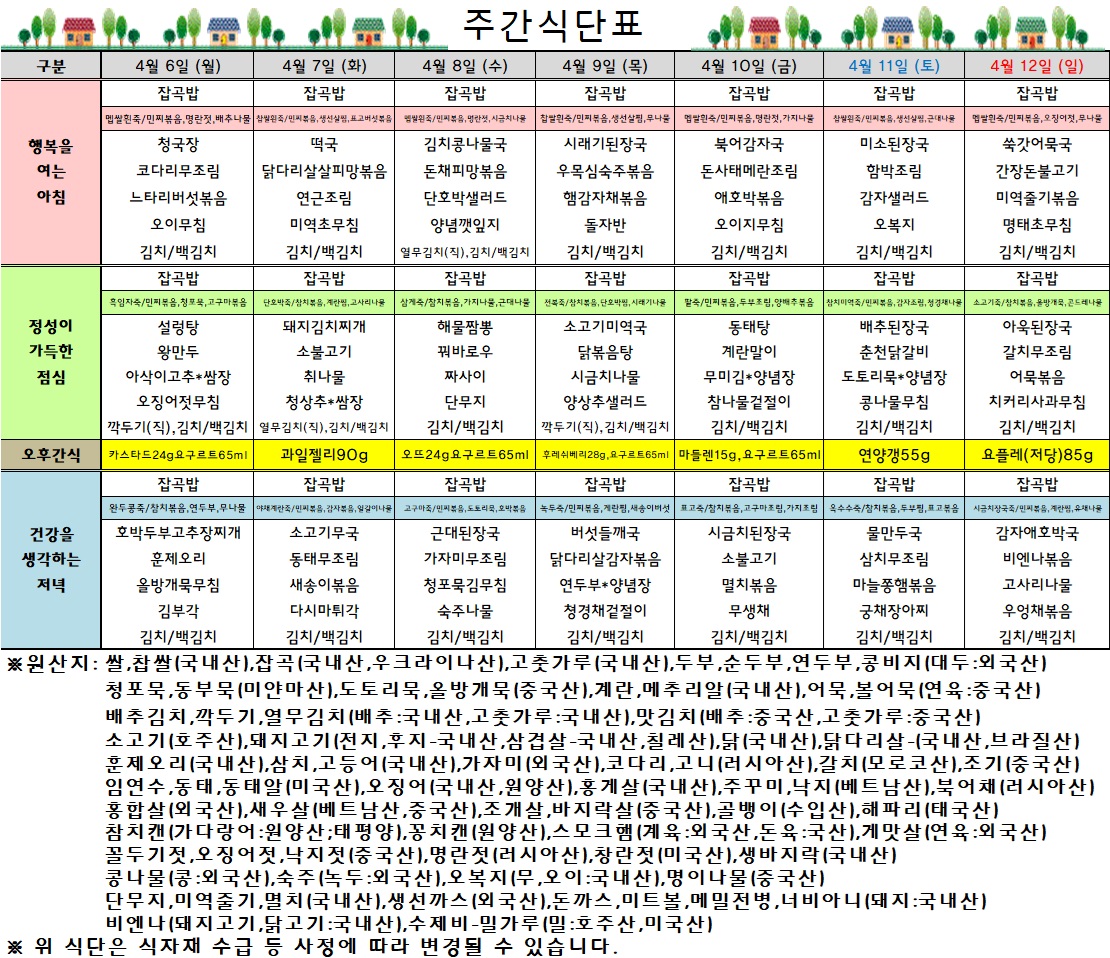 주간식단표(2026.04.06 ~ 2026.04.12)