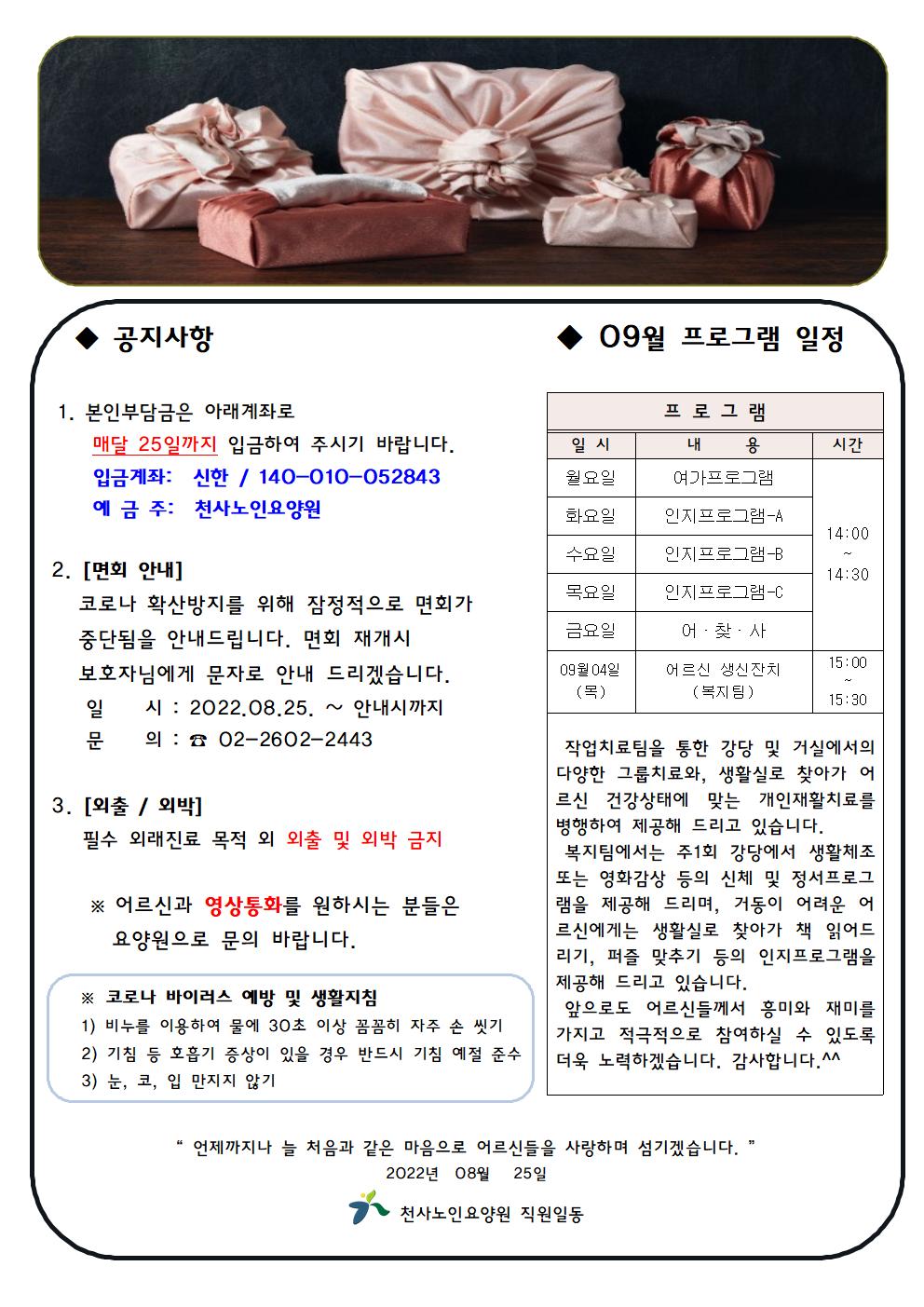 9월 가정통신문입니다.