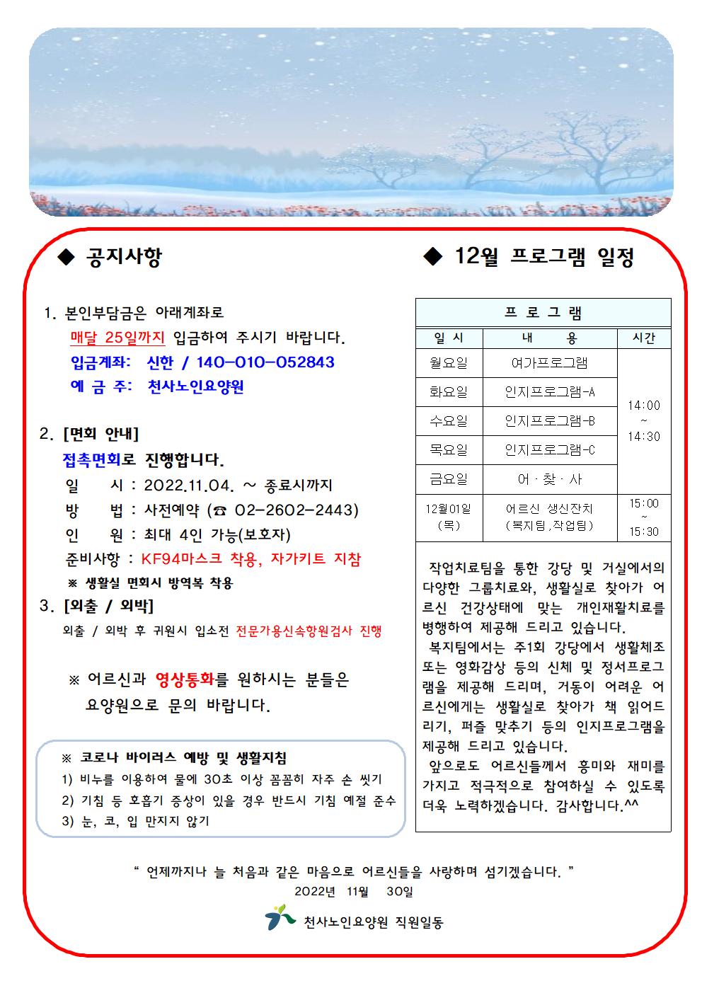 12월 가정통신문 입니다